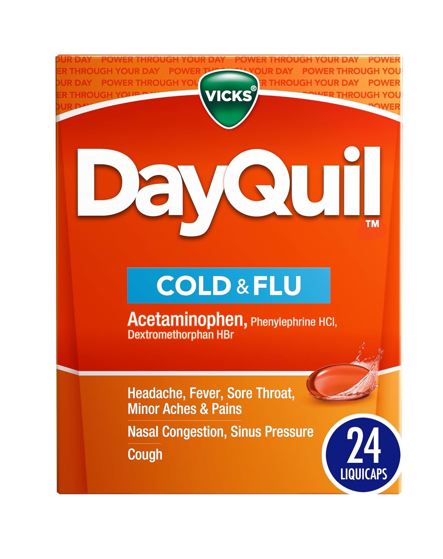 Power through your day with the non-drowsy, multi-symptom cold and flu relief of Vicks DayQuil LiquiCaps